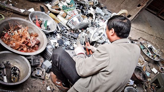 Electronic waste with rare metals is imported into Southeast Asia where valuable, toxic rare metals are extracted often by hand by poor laborers.